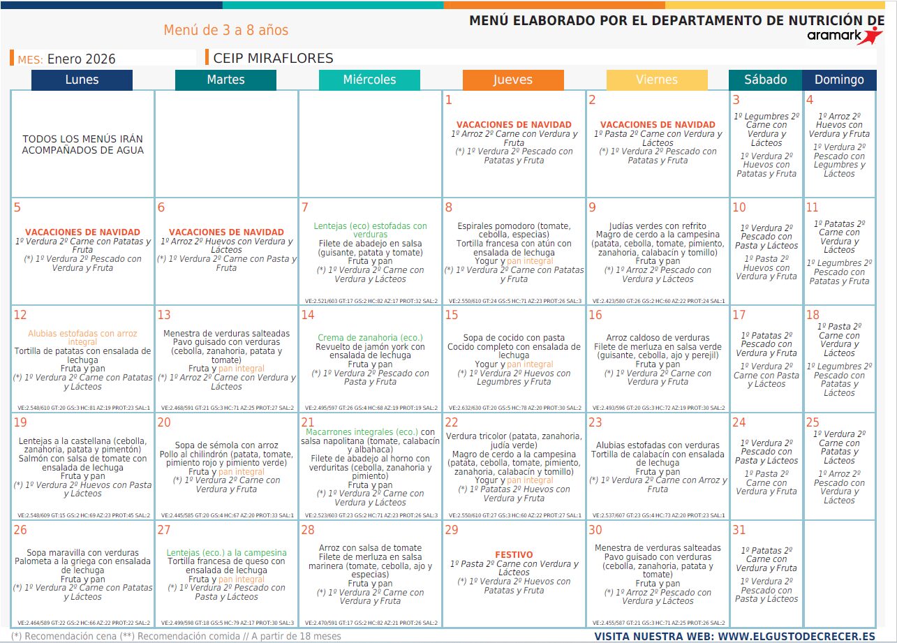 Comedor Escolar – enero